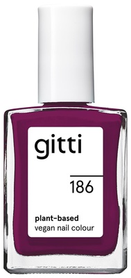 Nagellack in dunklen Pflaumenton mit bis zu 82 % pflanzenbasierten Inhaltsstoffen, hohe Deckkraft und glänzendes Finish, vegan.