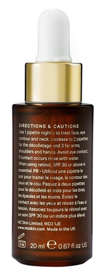 Retinol is one of the most researched anti-aging ingredients. As a form of vitamin A, it supports skin regeneration and acts as an energy booster for the fibroblasts, cells that are essential to the formation of connective tissue. Fibroblasts stimulate collagen and elastin production, which makes the skin not only look more even, but also younger and more radiant. Retinol is a game-changer for mature skin, but it also visibly benefits younger skin in which it helps prevent impurities, scars and sun damage. It is important to note that retinol should be applied at night because the active ingredient makes skin sensitive to light, meaning that it is essential to protect it with a high SPF during the day. If you are new to retinol, start with a low dosage of 0,1 or 0,3 percent and gradually increase as your skin adjusts to the effects. If you are pregnant or breastfeeding, please speak to your doctor or dermatologist before using.
