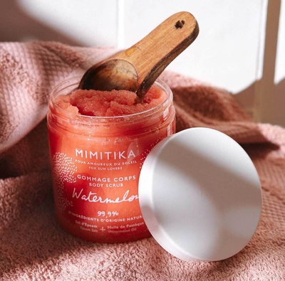 Step 1 – Prep: Exfoliate 24hrs before tanning with MIMITIKA Body Scrub and moisturize insisting in dry areas such as knees, elbows and ankles.